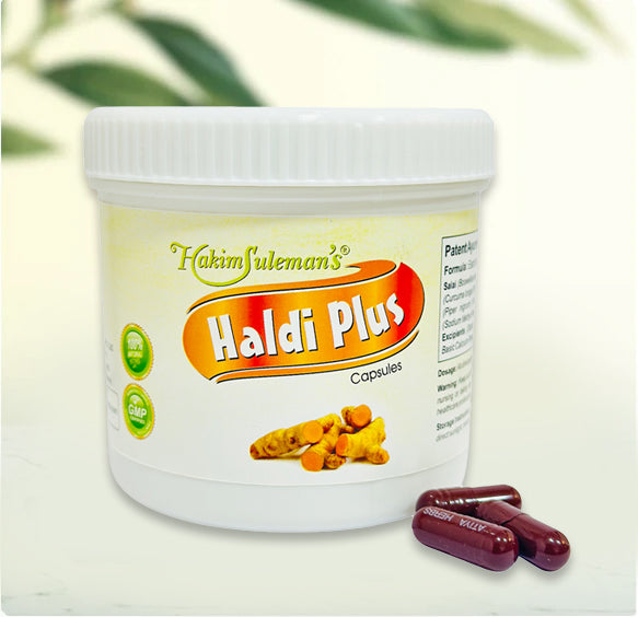 The medication "Haldi Plus" by Atiya Herbs is described as an anti-microbial capsule with properties aimed at combating microorganisms. With its active anti-inflammatory components, Haldi Plus may contribute to the reduction of inflammation or swelling. Additionally, it may help alleviate gastric issues and prevent stomach disorders. The formulation is designed to balance the Vata and Pitta dosha in the body.
