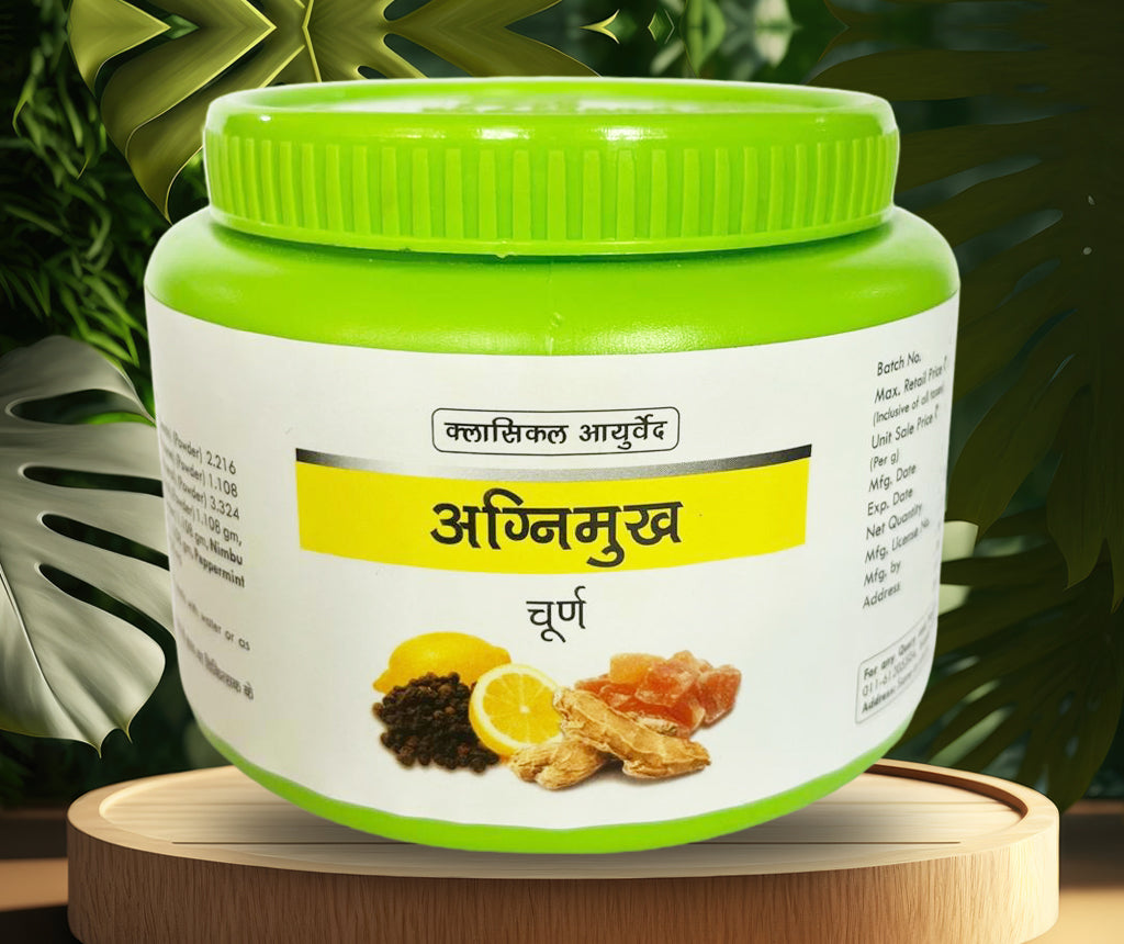 Agnimukh Churna is an Ayurvedic blend designed to support digestive health and enhance metabolism. Made from a combination of potent herbs, it helps improve appetite, reduce bloating, and promote effective digestion. With its natural ingredients, Agnimukh Churna aids in maintaining overall digestive wellness and vitality.