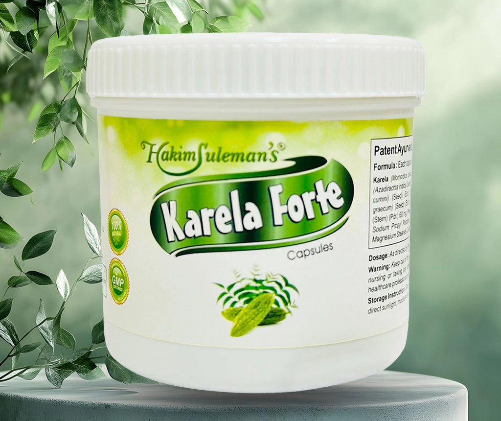 Karela Forte is a herbal formulation crafted with ingredients traditionally valued in Unani medicine. It may help purify the blood and support liver and spleen health. Rich in essential nutrients such as phosphorus, vitamins B1, B2, B3, C, folate, magnesium, zinc, iron, and manganese, it is designed to promote general health and vitality.