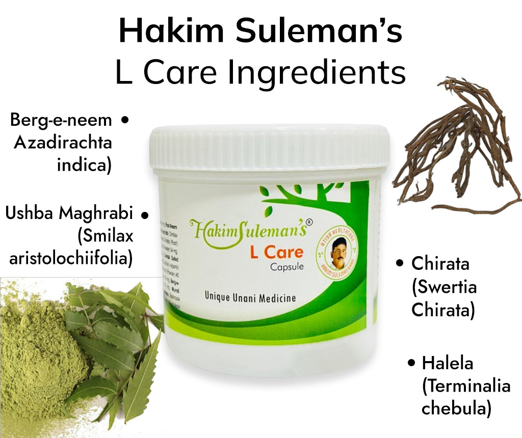L Care by Atiya Herbs is a herbal formulation designed to support overall skin health. With its antibacterial, antifungal, and antiseptic properties, it may help maintain clear and healthy skin. The nourishing and soothing attributes of L Care may assist in promoting skin repair and rejuvenation. Additionally, its blood-purifying properties are believed to contribute to overall skin vitality and balance.