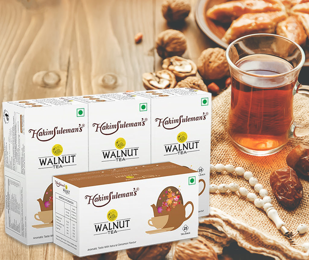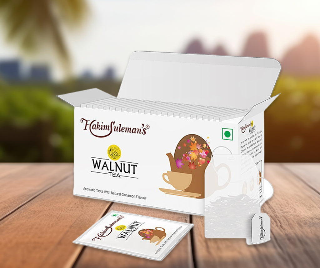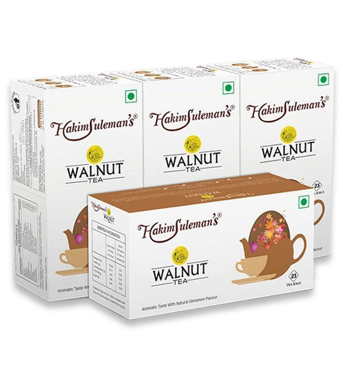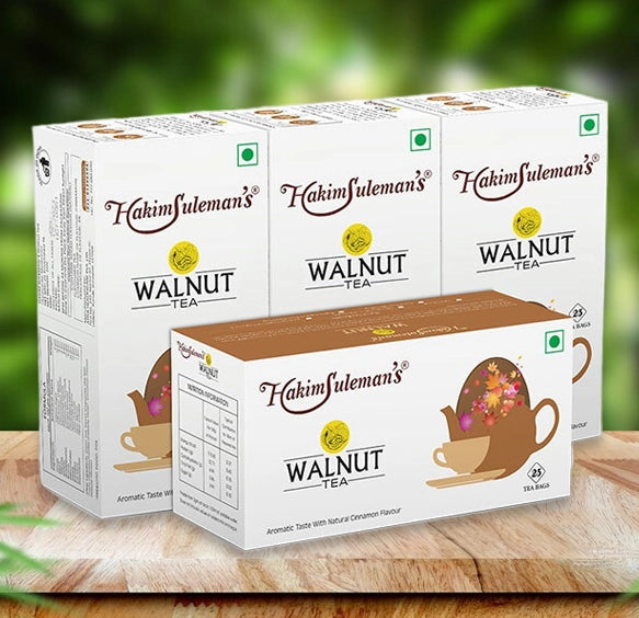 Walnut Tea, created by Hakim Suleman, is positioned as a unique addition to the world of herbal teas. It is suggested that this tea may assist in weight management, support clearer skin, help reduce weakness, aid in balancing cholesterol levels, soothe intestinal discomfort, and promote brain function.